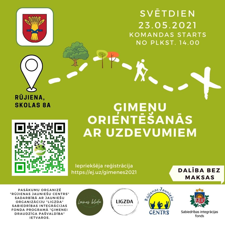 Šā gada 23.maijā Rūjienas jauniešu centrs sadarbībā ar jauniešu organizāciju LIGZDA aicina piedalīties ģimeņu orientēšanās pasākumā!