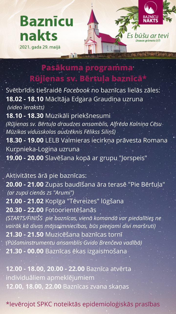 Pasākuma laikā stingri jāievēro valstī noteiktie epidemioloģiskās drošības pasākumi. Dalība bez maksas