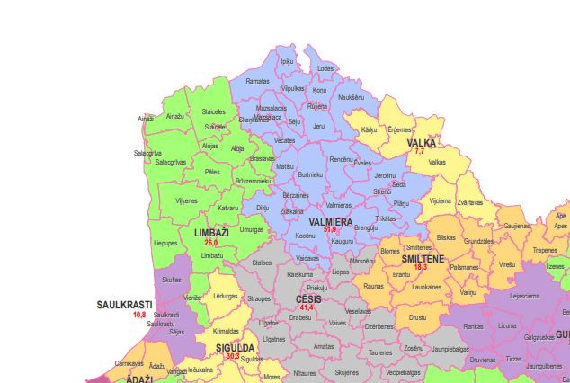 4 pilsētas: Mazsalaca, Rūjiena, Seda, Strenči;