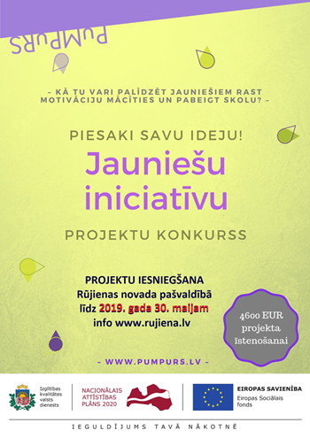 Rūjienas novada pašvaldība izsludina pieteikšanos projekta konkursā “Jauniešu iniciatīvu projekti PuMPuRS ietvaros”