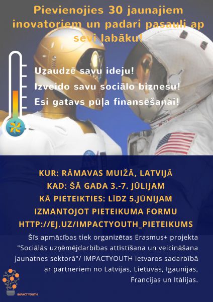Izsludināta pieteikšanās jauniešu sociālā biznesa akseleratoram "Kā izveidot atbilstošu sociālā biznesa modeli un kā sagatavot savu ideju pūļa finansēšanai".