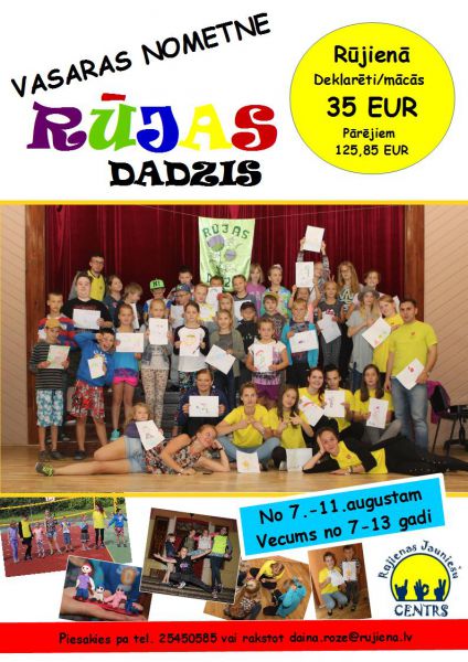 2. Nometnes dalības maksa: 35 EUR - Rūjienas nov. deklarētiem bērniem un Rūjienas vidusskolas skolēniem, pārējiem 125,85 EUR Piesakies līdz 16. jūlijam elektroniski: [email protected] vai pa tel. 25450585