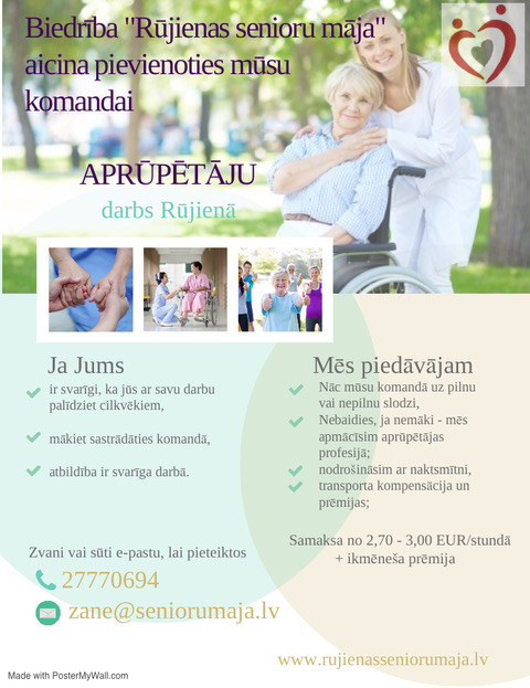 Biedrība "Rūjienas senioru māja" aicina pievienoties mūsu komandai APRŪPĒTĀJU