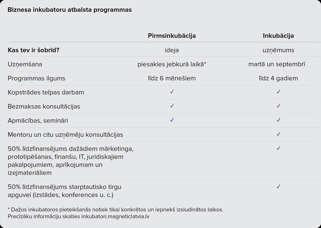 Latvijas Investīciju un attīstības aģentūras (LIAA) Valmieras biznesa inkubators izziņo 2019. gada rudens uzņemšanu un aicina jaunos uzņēmējus un biznesa ideju autorus pieteikties konsultācijām pirms pieteikumu iesniegšanas pirmsinkubācijas un inkubācijas programmās.
