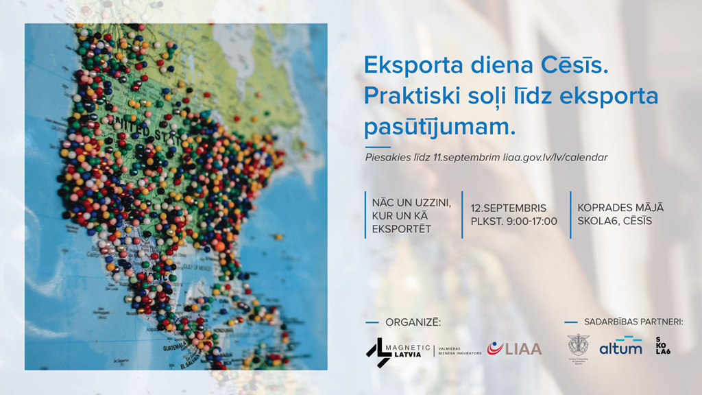 Aicinām uz pasākumu "Eksporta diena Cēsīs. Praktiski soļi līdz eksporta pasūtījumam" 12.septembrī, Cēsīs