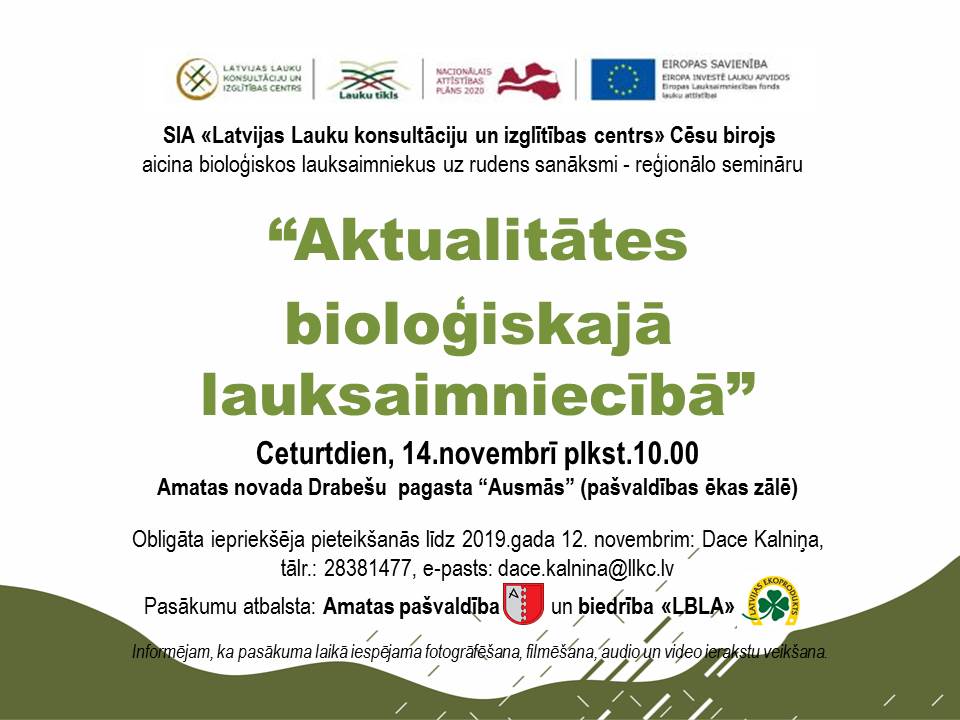 Agrovides pasākumos, arī bioloģiskajā lauksaimniecībā, varēs uzņemties jaunas saistības