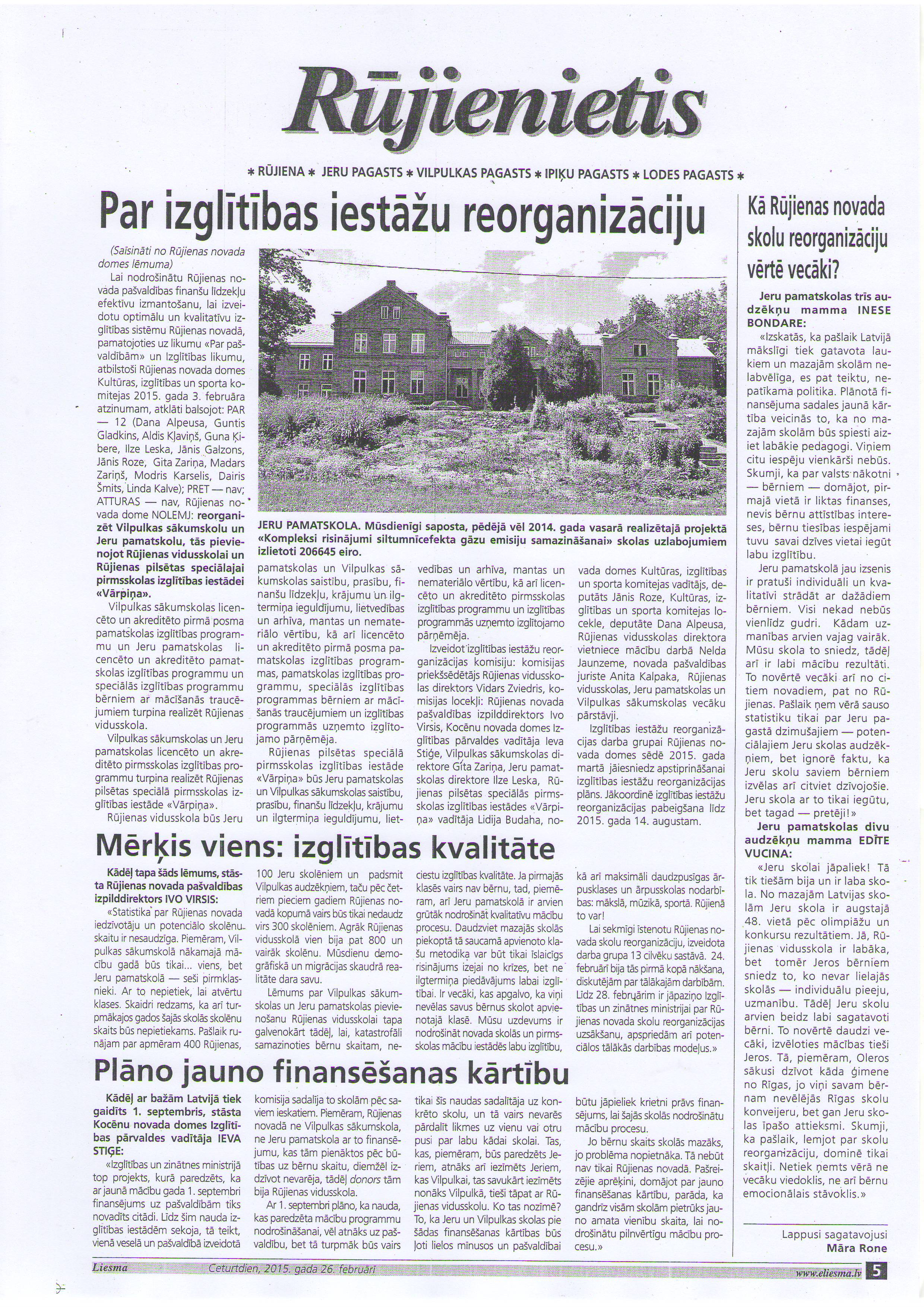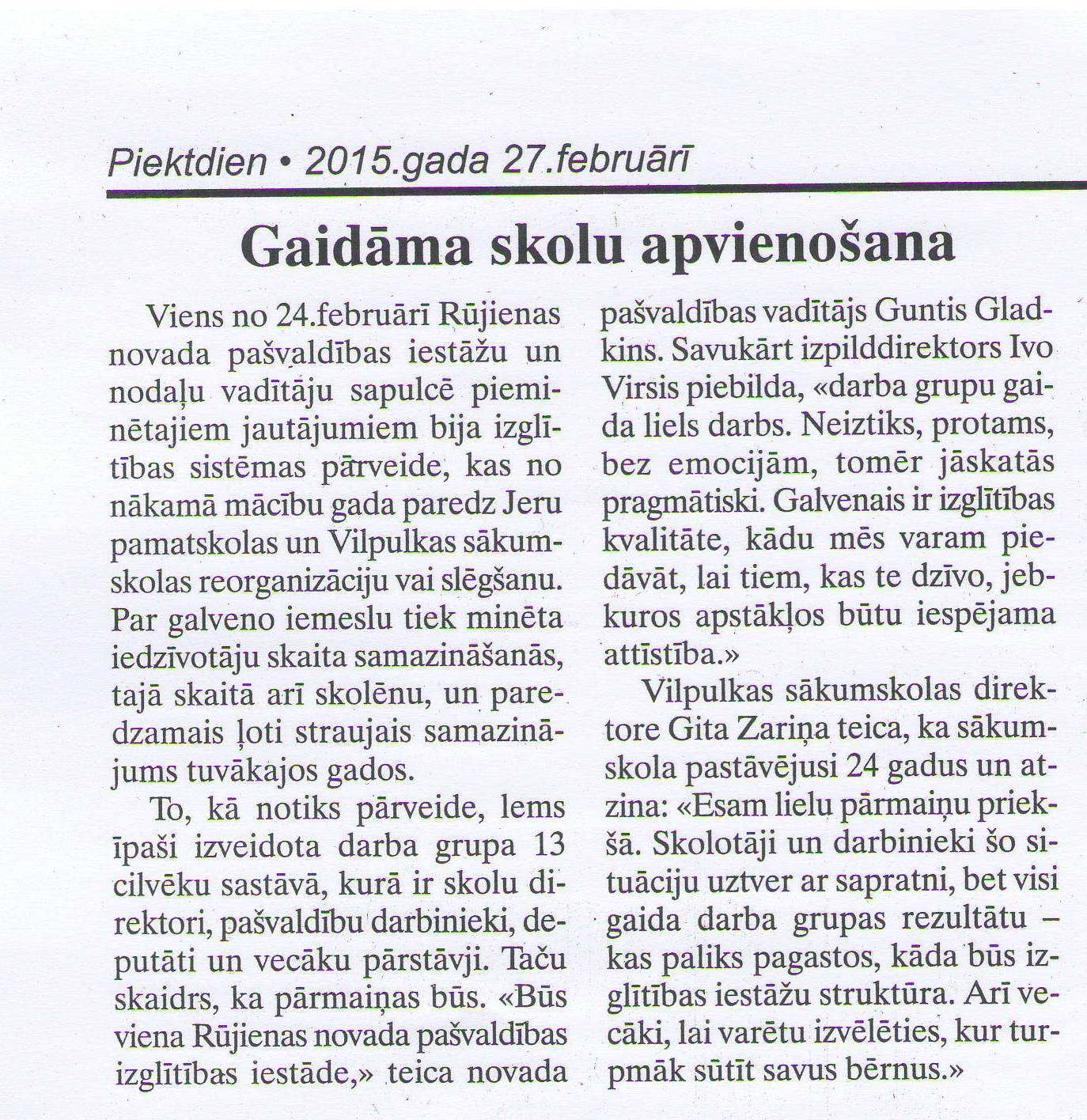- „Rūjienas novadā apvieno vairākas skolas” 25.02.2015.