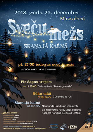 2018. gada 25. decembrī no plkst. 15:00 Skaņākalna dabas parkā, Mazsalacā, iedegsies gaismiņas pasākumā “Sveču mežs Skaņajā kalnā”. Parkā pie Sapņu trepēm pārsteigs gaismu šovs “Noskaņu mežs”, un dodoties tālāk pa taciņām no plkst. 16:00 Rūķu takā “Čučumuižas rūķi” aicinās bērnus un vecākus uz Ziemassvētku ieskandināšanu.