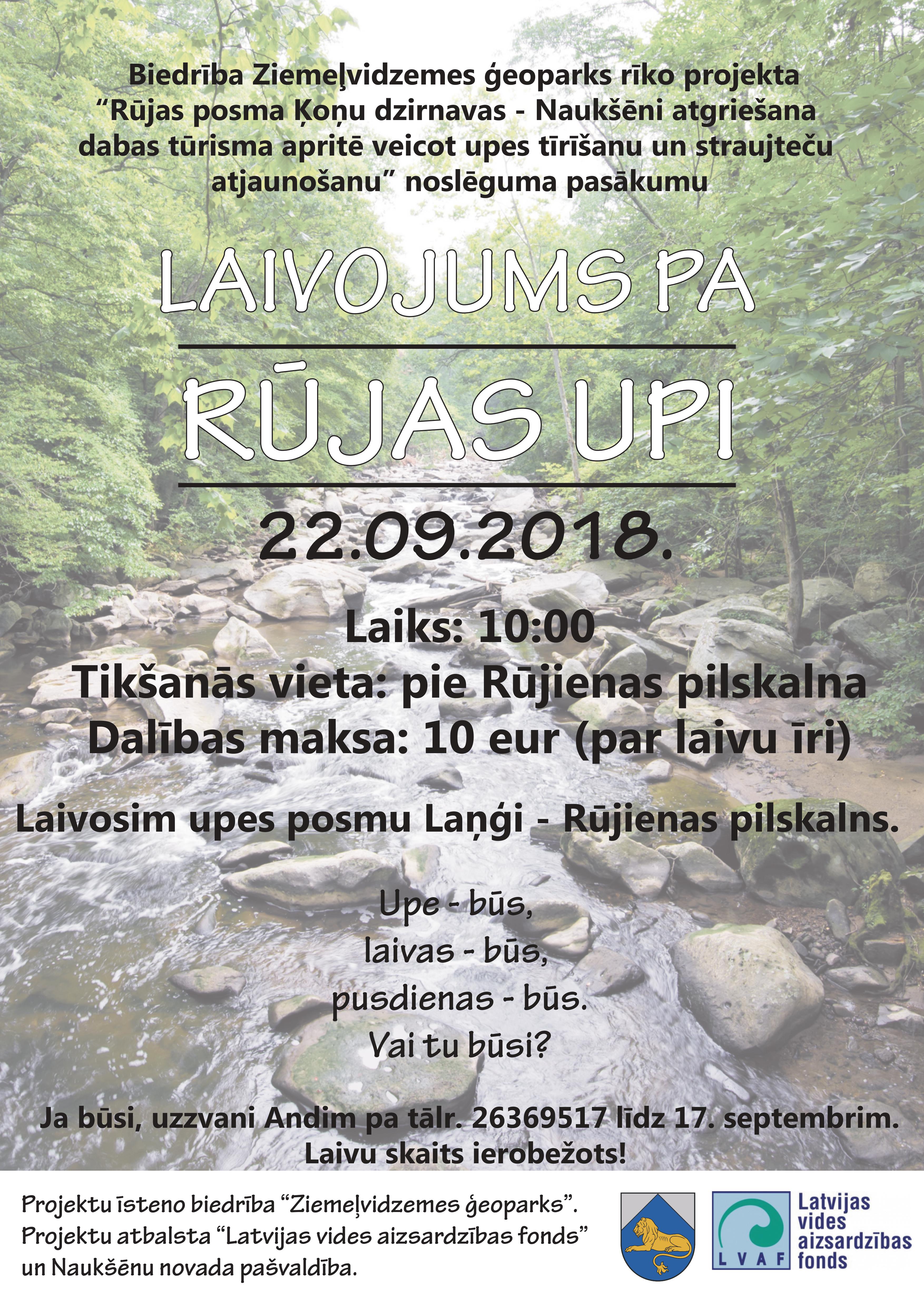 Projekta “Rūjas posma Ķoņu dzirnavas – Naukšēni atgriešana dabas tūrisma apritē veicot upes tīrīšanu un straujteču atjaunošanu” ietvaros 22. septembrī pēc vairāku gadu pārtraukuma būs iespēja laivot Rūjas upes daļu, kas tek cauri Naukšēnu novadam. Projekta ietvaros upe ir attīrīta no kokiem, sanesumiem un bebru aizsprostiem, radot to atkal pieejamu ūdens tūrismam.