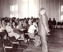 Ikgadējs bibliotēkas organizēts pasākums "Dzejas dienas". Tikšanās ar rakstnieku Zigmundu Skujiņu. 1987.gads.