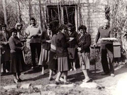 Bibliotēkas darbinieki ciemojas pie gleznotāja Arvīda Straujas. 1986.gads.